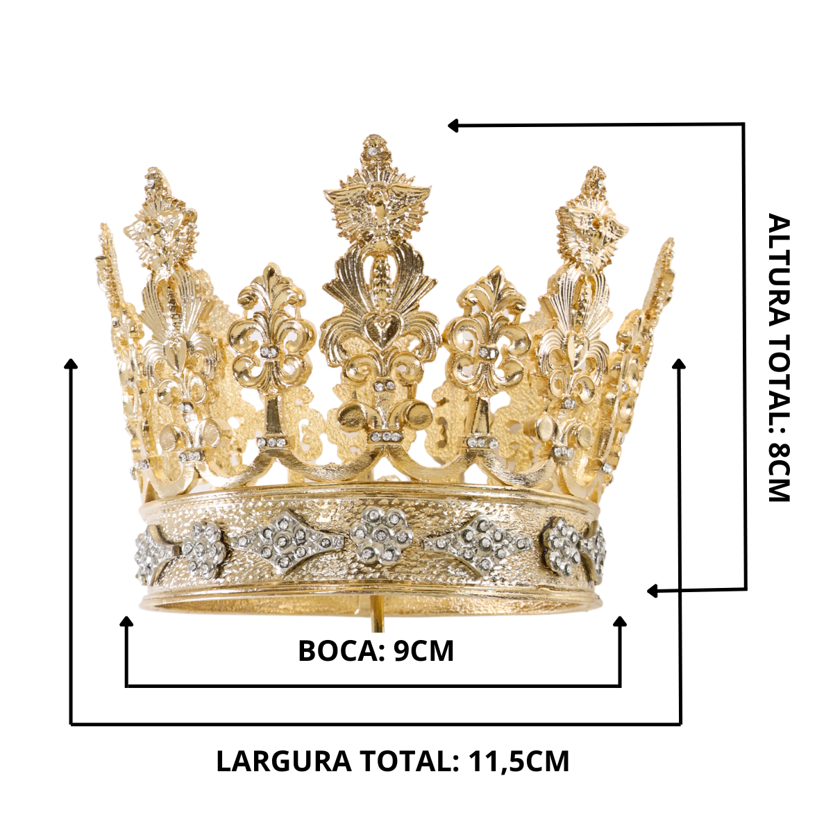 Apresentamos nossa deslumbrante coroa, meticulosamente elaborada para realçar a presença divina em sua casa, capela ou igreja.