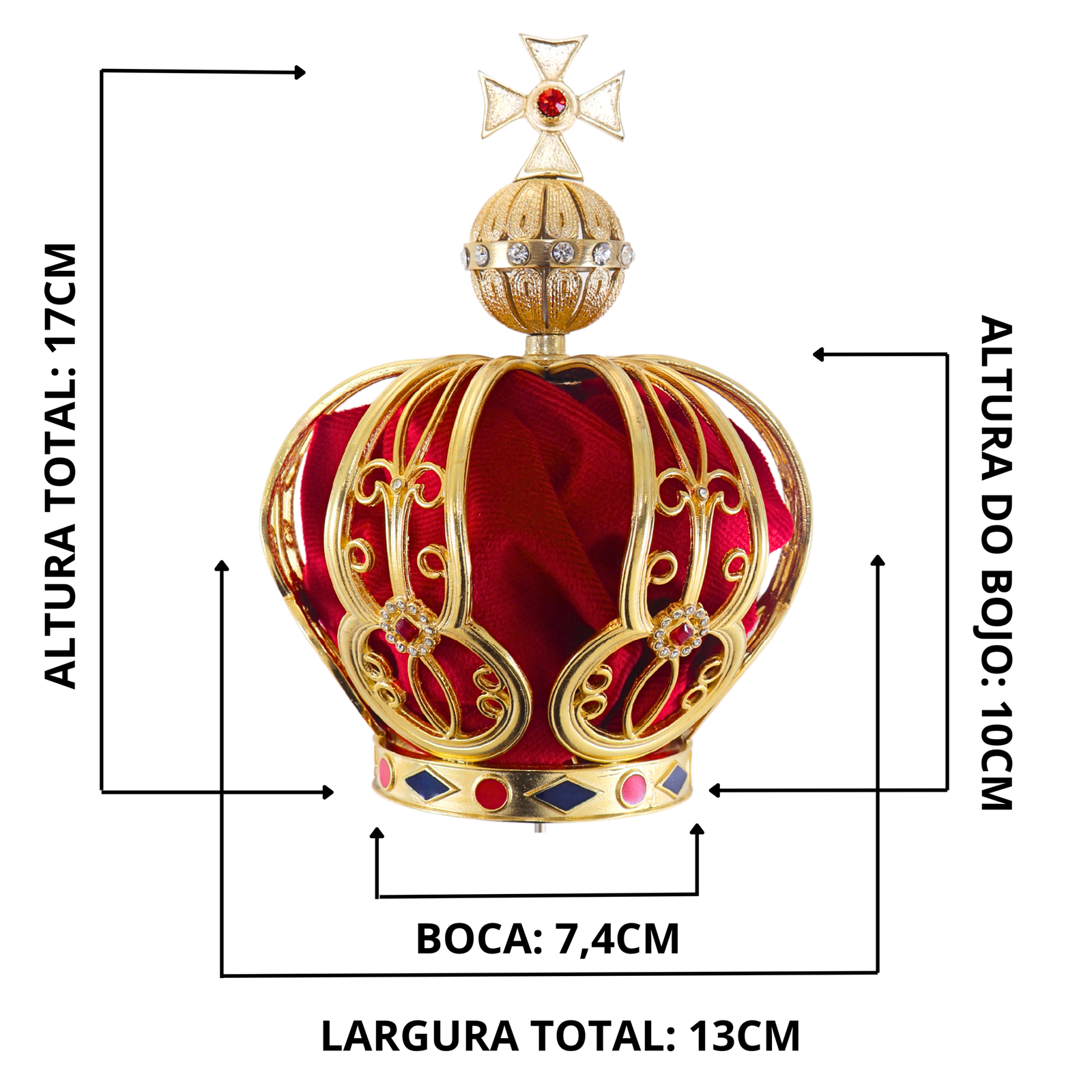 Fabricadas artesanalmente há mais de 35 anos por nossos artistas, que conseguem transformar metal em verdadeiras obras de arte, nossas coroas são confeccionadas em liga de estanho, a mesma liga usada em bijuterias e semi jóias.