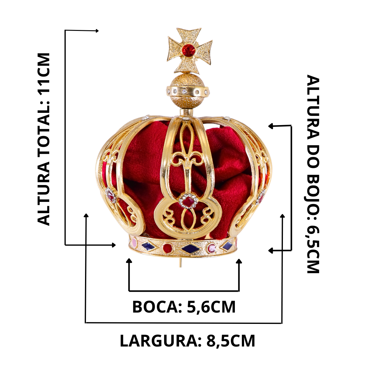 Fabricadas artesanalmente há mais de 35 anos por nossos artistas, que conseguem transformar metal em verdadeiras obras de arte, nossas coroas são confeccionadas em liga de estanho, a mesma liga usada em bijuterias e semi jóias.