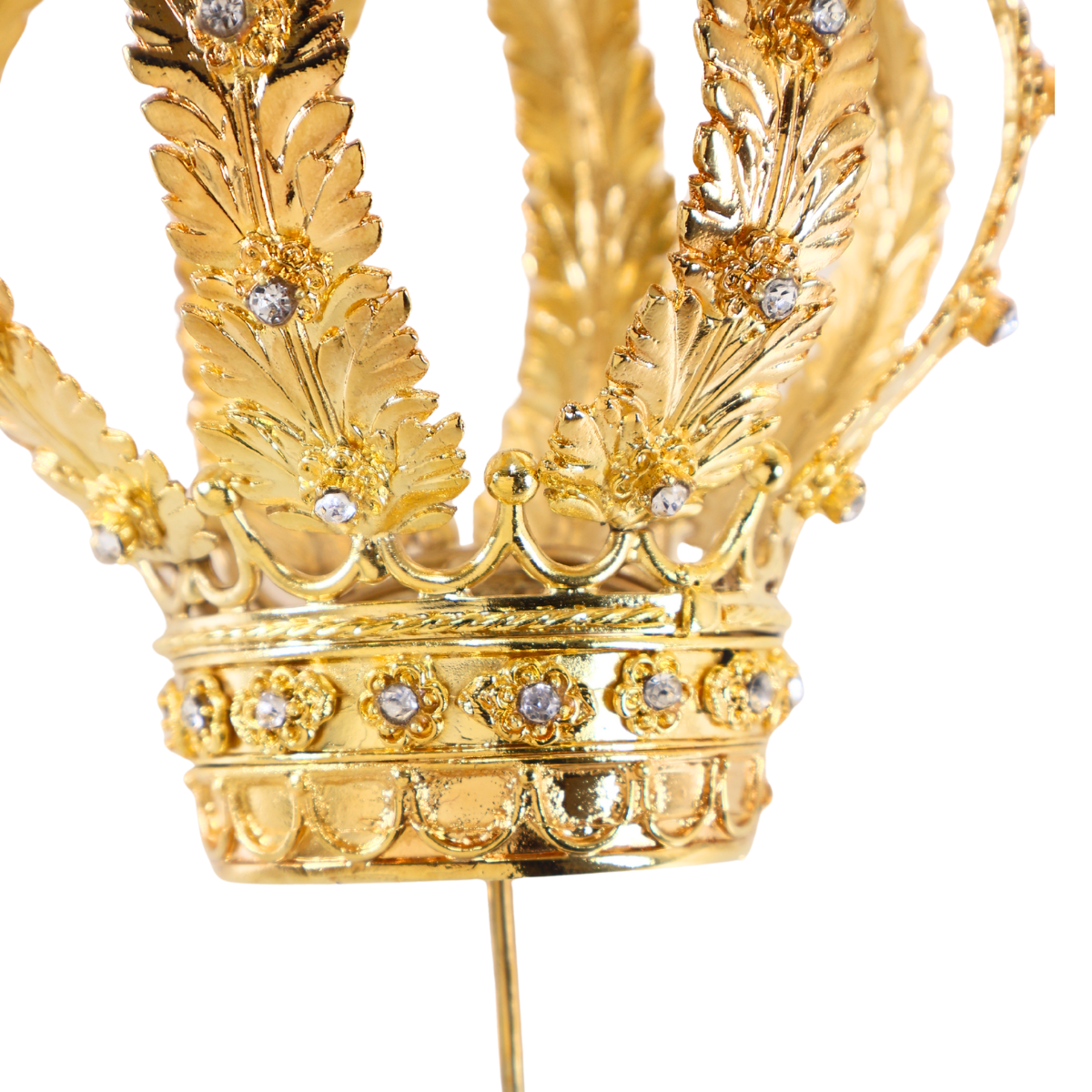 Elas são fundidas em várias partes, que depois são polidas, moldadas e soldadas uma a uma, transformando assim esses pequenos componentes em lindas coroas banhadas à ouro, com pedras de excelente qualidades e modelos exclusivos.
